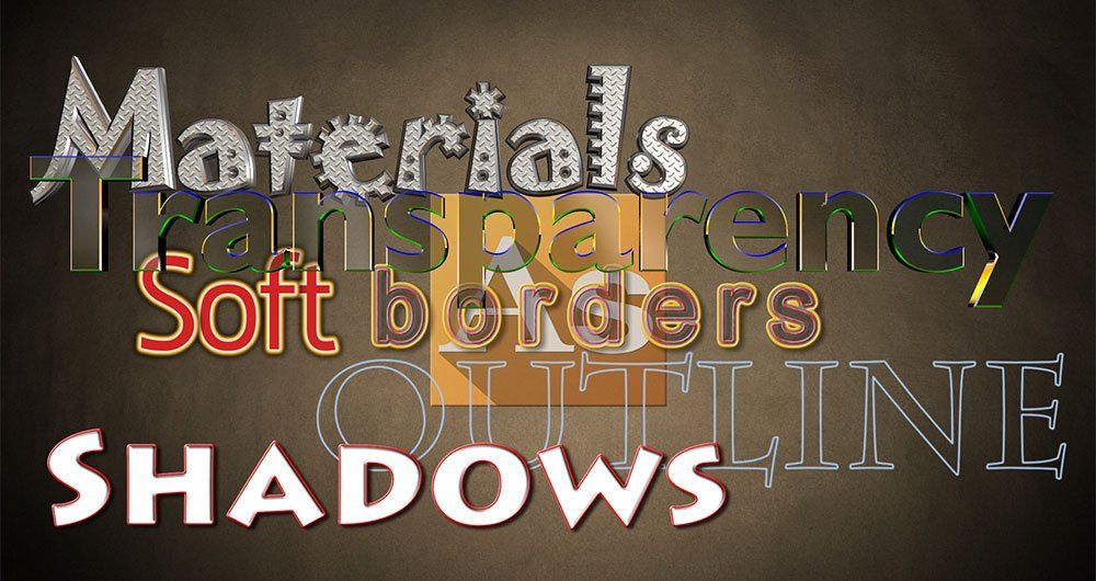 Zahlreiche, unabhängig voneinander einstellbare Schriftattribute wie Größe, Kerning, Laufweite, Breite sowie Körper, Rahmen, Umriss, Schatten und vieles mehr.