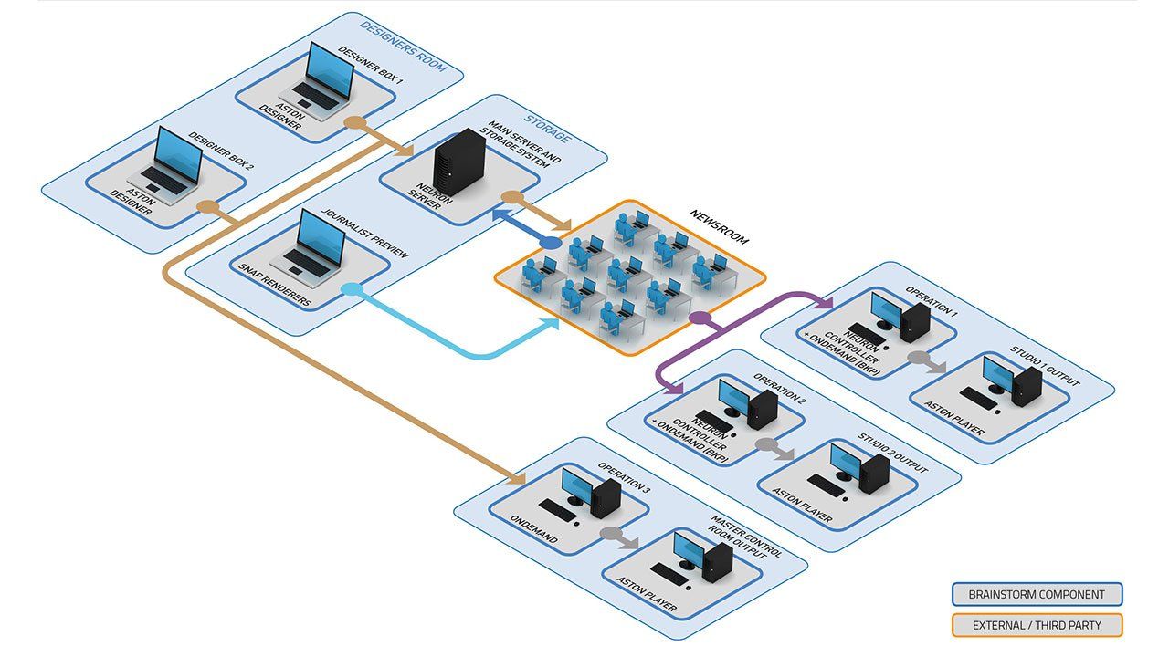 Aston ist nicht nur ein Produkt, sondern eine ganze Familie von 2D- und 3D-Modulen (Designer, Player, CG und Snap Render), die von der Erstellung bis zum Playout reichen. Diese Module können in verschiedenen Paketen und mit unterschiedlichen Funktionen kombiniert werden, um die spezifischen Anforderungen der Kunden zu erfüllen. Aston wird als komplettes, schlüsselfertiges System geliefert, das sofort und vollständig in den Workflow eines jeden Senders integriert werden kann, sowohl als eigenständiges System als auch in komplexen Umgebungen. Durch die Verwendung von Standard-Broadcast und vollständiger IT-Konnektivität ist das System vom ersten Tag an optimal vorbereitet.