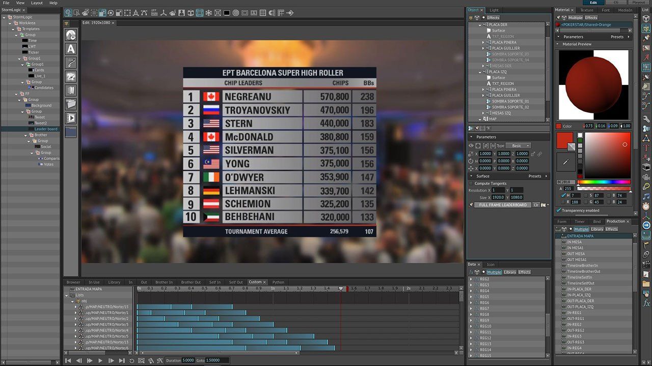Um die Flexibilität bei der Erstellung und Wiedergabe von Grafiken zu erhöhen, entwickelte Brainstorm StormLogic, einen Ansatz zur intuitiven Template-Interaktion mit einer fortschrittlichen objektbasierten Animation. StormLogic ermöglicht die Erstellung komplexer Animationen und Interaktionen zwischen Elementen, ohne dass Skripting oder komplexe Animationsmatrizen erforderlich sind.