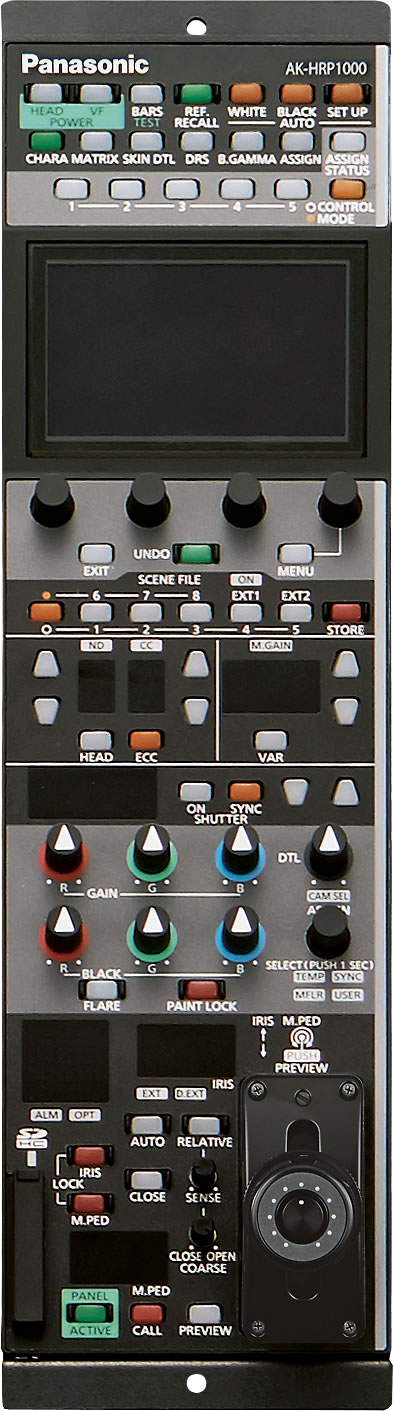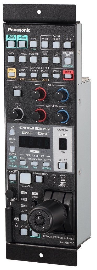 Das kompakte Bedienfeld AK-HRP200E unterstützt die IP-Steuerung der Studiokamera AK-HC3800. Die IP-Steuerung kann auch für die Fernsteuerung kompatibler Panasonic- und PTZ-Kameras genutzt werden. Das System verfügt über eine kompakte 6U-Größe und ist mit Joystick-Steuerung für Blenden- und Podestbetrieb ausgerüstet. Szenedateifunktionalität wird ebenfalls unterstützt. Zusätzlich ist das Fernsteuerungsbedienfeld AK-HRP200E mit einem SD-Speicherkartensteckplatz ausgerüstet, über den Benutzerdateien gespeichert und Firmware-Updates eingespielt werden können.