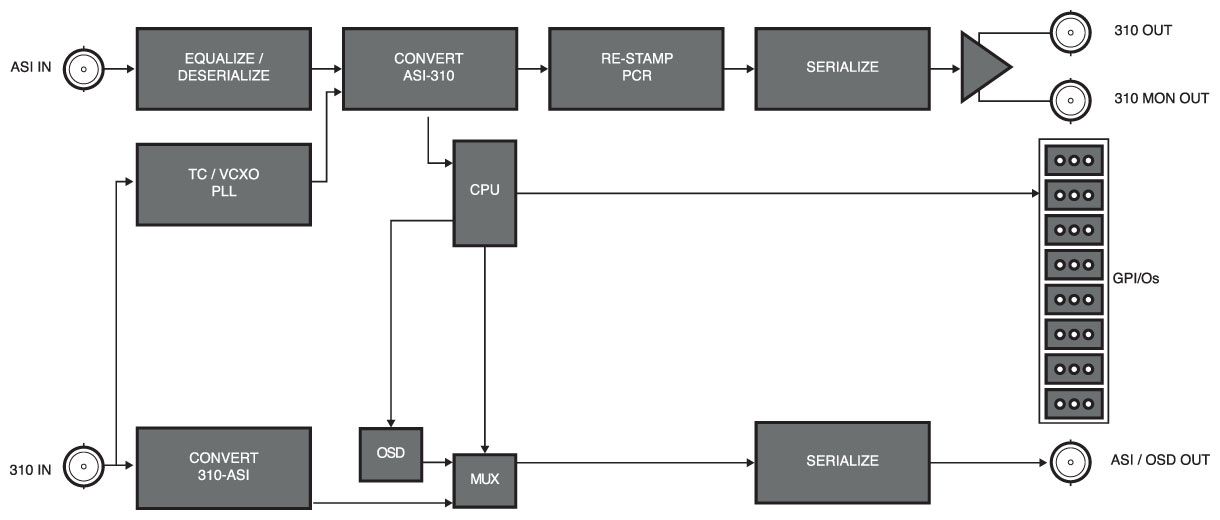 - Konvertierung von ASI in 310 zur Verwendung durch ATSC-Übertragungsgeräte