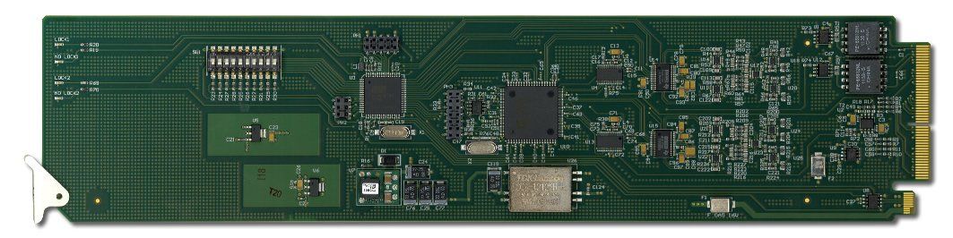 Der Vierfach-Analog-Audio-Dual-AES-Konverter ADC-8434-A ist eine modulare Lösung in Broadcast-Qualität, die 4 analoge Audiokanäle in unsymmetrische 2,24-Bit-AES3-Signale umwandelt. Der ADC-8434-A akzeptiert 4 analoge Audiosignale (2 Stereopaare) und stellt 2 Kopien von jedem der 2 AES / EBU-Ausgangssignale zur Verfügung.