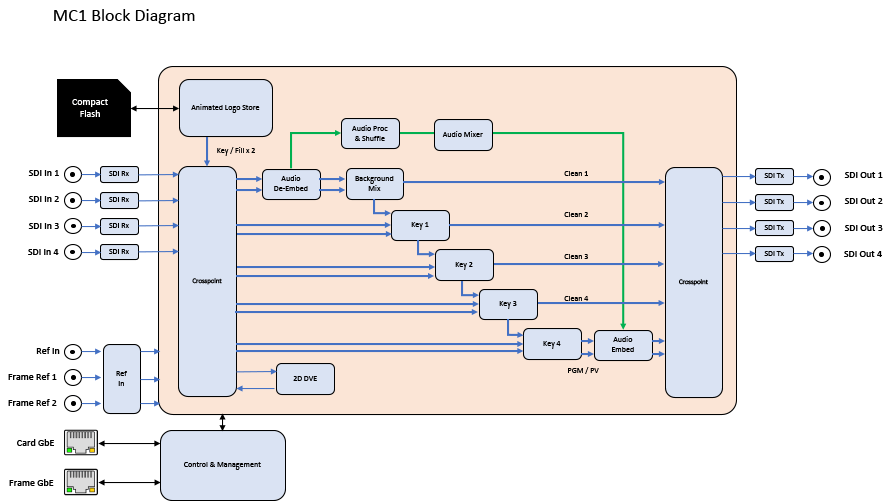 | MC1-64 | 3G / HD / SD 64 Input Master Control (Configurable to 72) |