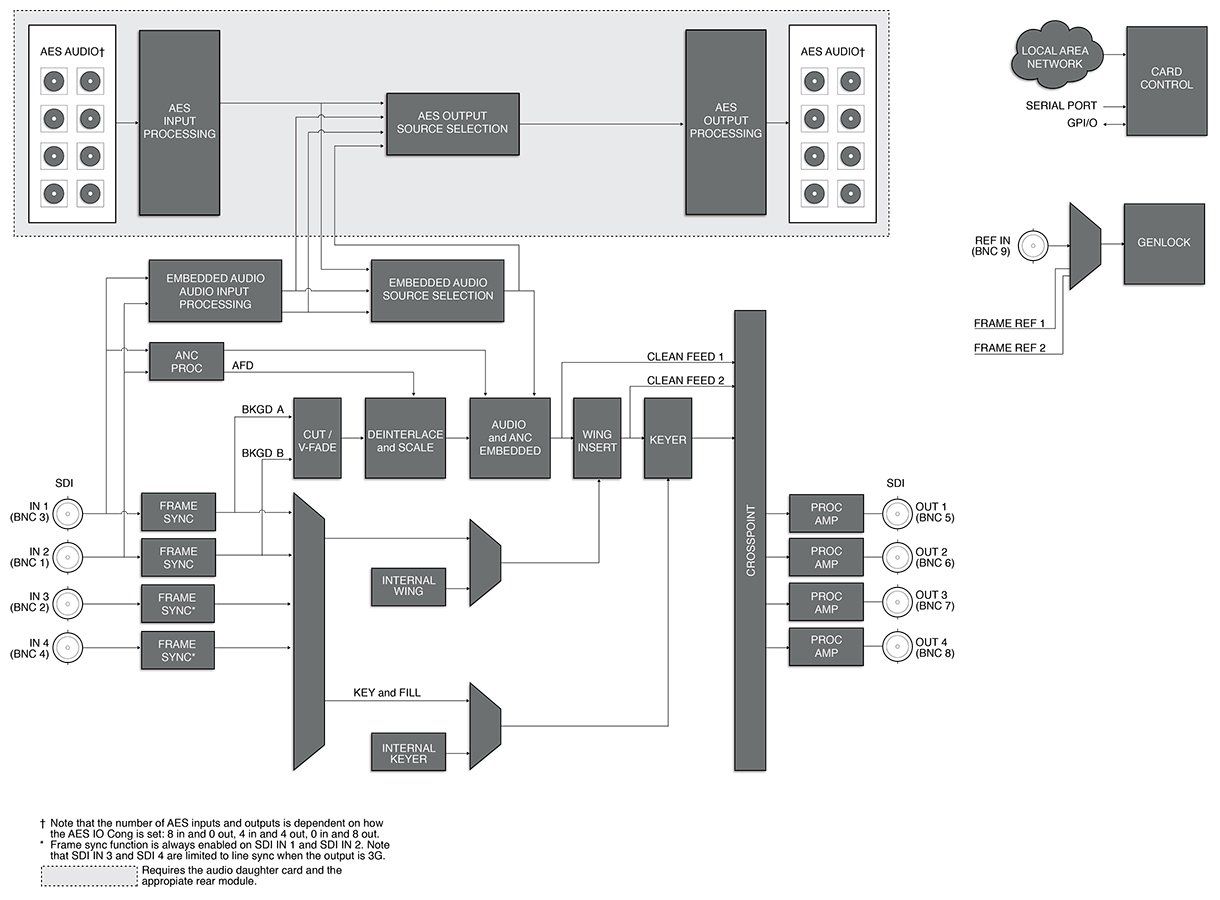 - Vollständige diskrete AES-Audioverarbeitung, relativ zum Video verzögert