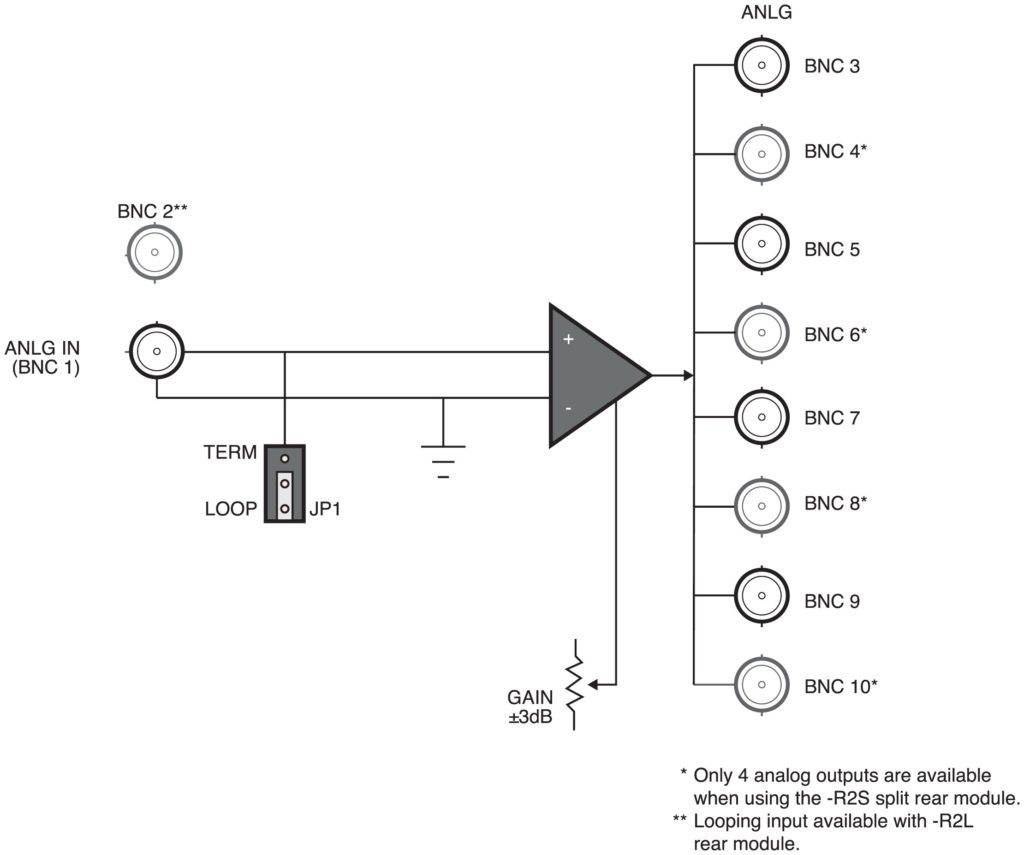 Das Eingangssignal wird mit Hilfe des -R2L-Schleifenmoduls auf der Rückseite passiv durchgeschleift.